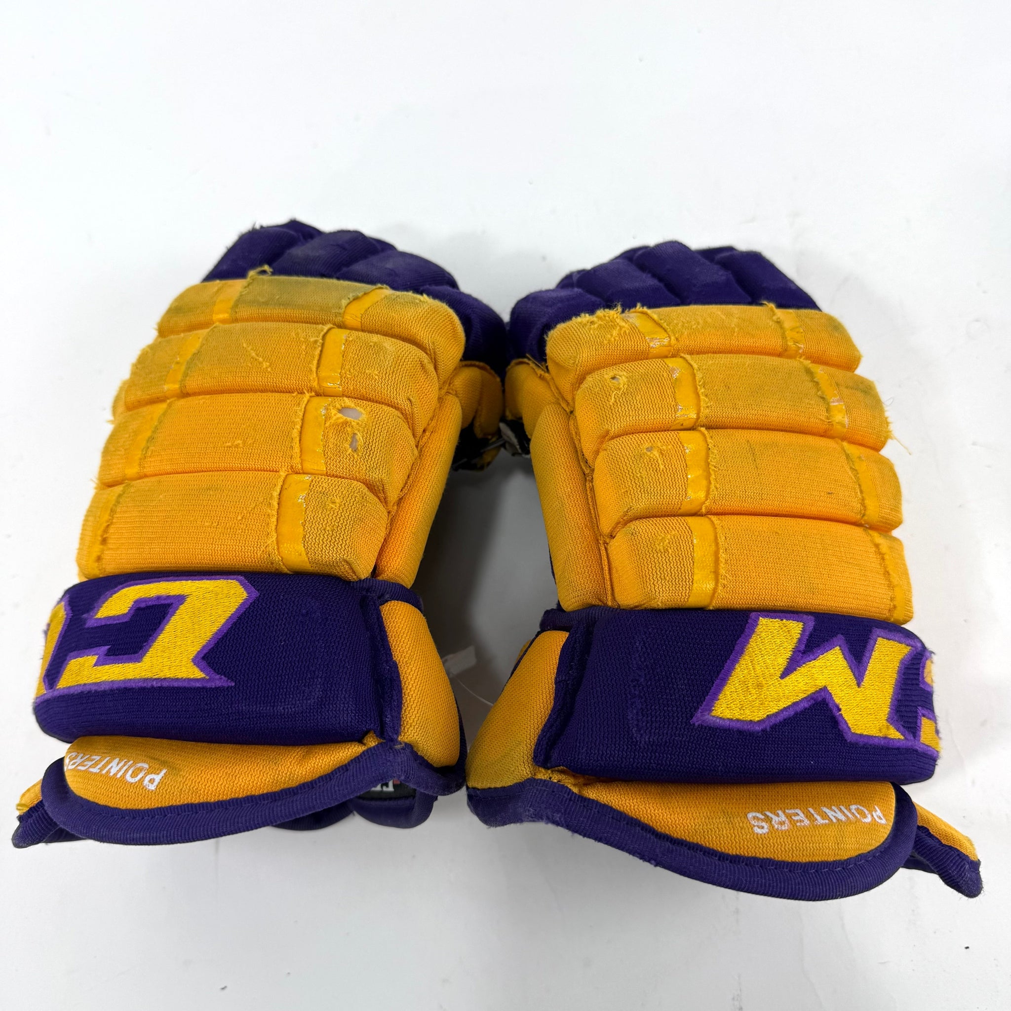 Used Yellow and Purple CCM 4 Roll Pro Gloves | 14" | E461