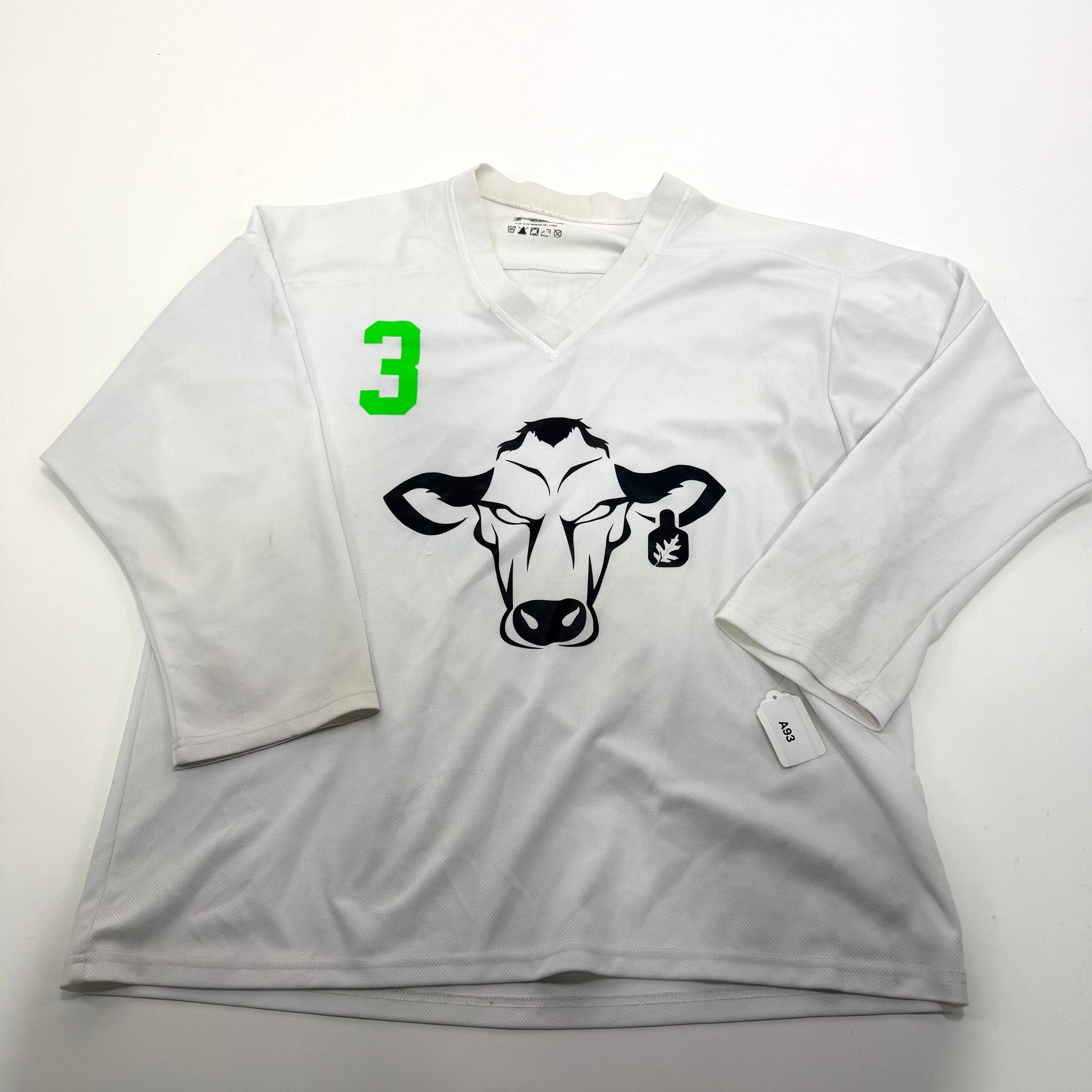 {"id":8040733606064,"title":"Used White Tron Cow Jersey | Large | A93","handle":"used-white-tron-cow-jersey-large-a93","description":"Used White Tron Cow Jersey | Large | A93\nPlease message with any questions","published_at":"2026-04-21T19:34:40-05:00","created_at":"2026-04-21T19:34:40-05:00","vendor":"Top Flight Hockey","type":"","tags":[],"price":1900,"price_min":1900,"price_max":1900,"available":true,"price_varies":false,"compare_at_price":null,"compare_at_price_min":0,"compare_at_price_max":0,"compare_at_price_varies":false,"variants":[{"id":45064759148720,"title":"Default Title","option1":"Default Title","option2":null,"option3":null,"sku":"USED-WHITE-TRON-COW-JERSEY-LARGE-A93-11790899","requires_shipping":true,"taxable":true,"featured_image":null,"available":true,"name":"Used White Tron Cow Jersey | Large | A93","public_title":null,"options":["Default Title"],"price":1900,"weight":0,"compare_at_price":null,"inventory_management":"shopify","barcode":null,"requires_selling_plan":false,"selling_plan_allocations":[],"quantity_rule":{"min":1,"max":null,"increment":1}}],"images":["\/\/topflighthockey.com\/cdn\/shop\/files\/48bddb6d02de12a3_original.jpg?v=1776818080","\/\/topflighthockey.com\/cdn\/shop\/files\/8aae73d108682848_original.jpg?v=1776818080"],"featured_image":"\/\/topflighthockey.com\/cdn\/shop\/files\/48bddb6d02de12a3_original.jpg?v=1776818080","options":["Title"],"media":[{"alt":null,"id":29868662685872,"position":1,"preview_image":{"aspect_ratio":1.0,"height":4284,"width":4284,"src":"\/\/topflighthockey.com\/cdn\/shop\/files\/48bddb6d02de12a3_original.jpg?v=1776818080"},"aspect_ratio":1.0,"height":4284,"media_type":"image","src":"\/\/topflighthockey.com\/cdn\/shop\/files\/48bddb6d02de12a3_original.jpg?v=1776818080","width":4284},{"alt":null,"id":29868662718640,"position":2,"preview_image":{"aspect_ratio":1.0,"height":4284,"width":4284,"src":"\/\/topflighthockey.com\/cdn\/shop\/files\/8aae73d108682848_original.jpg?v=1776818080"},"aspect_ratio":1.0,"height":4284,"media_type":"image","src":"\/\/topflighthockey.com\/cdn\/shop\/files\/8aae73d108682848_original.jpg?v=1776818080","width":4284}],"requires_selling_plan":false,"selling_plan_groups":[],"content":"Used White Tron Cow Jersey | Large | A93\nPlease message with any questions"}