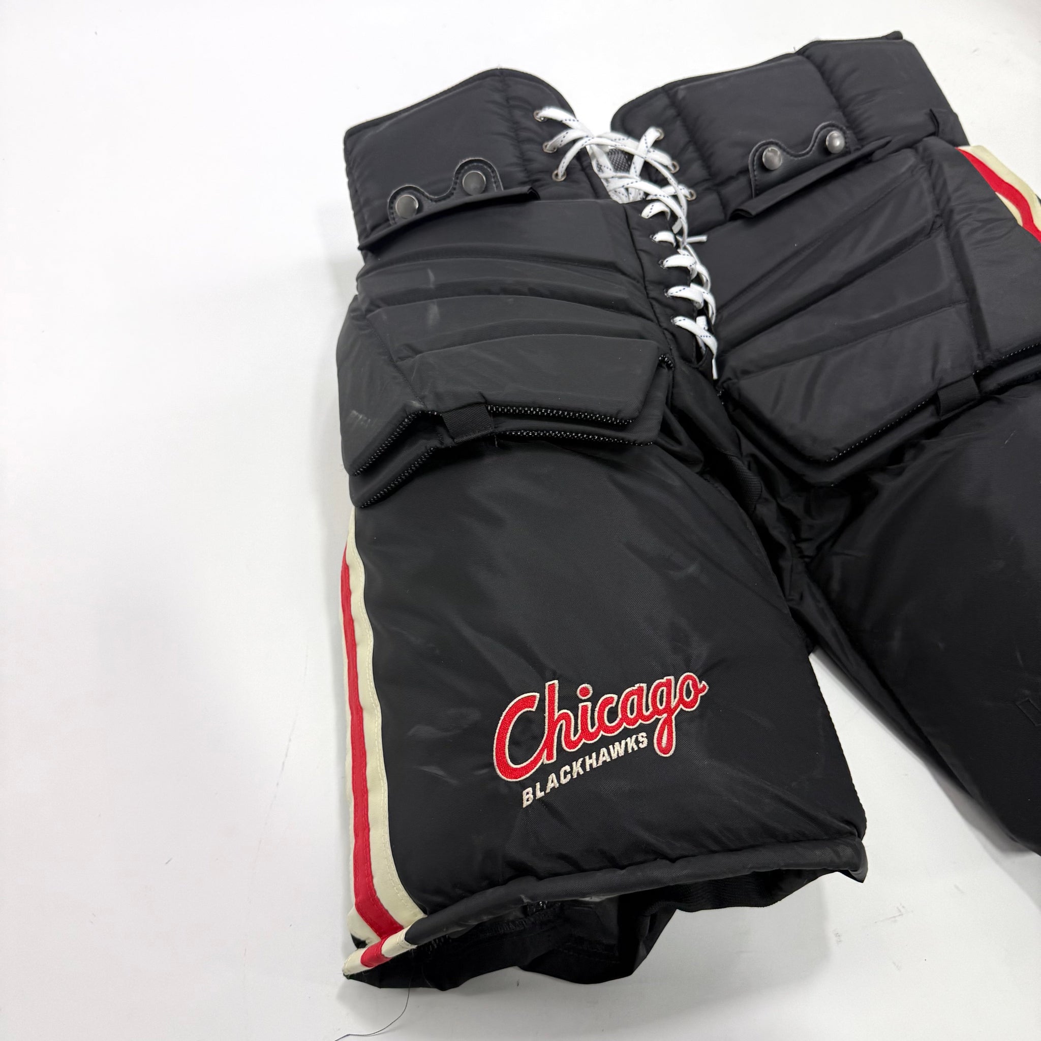 Used Black Chicago Blackhawks Winter Classic Vaughn Pro Goalie Pants | XL? | Soderblom | BH256