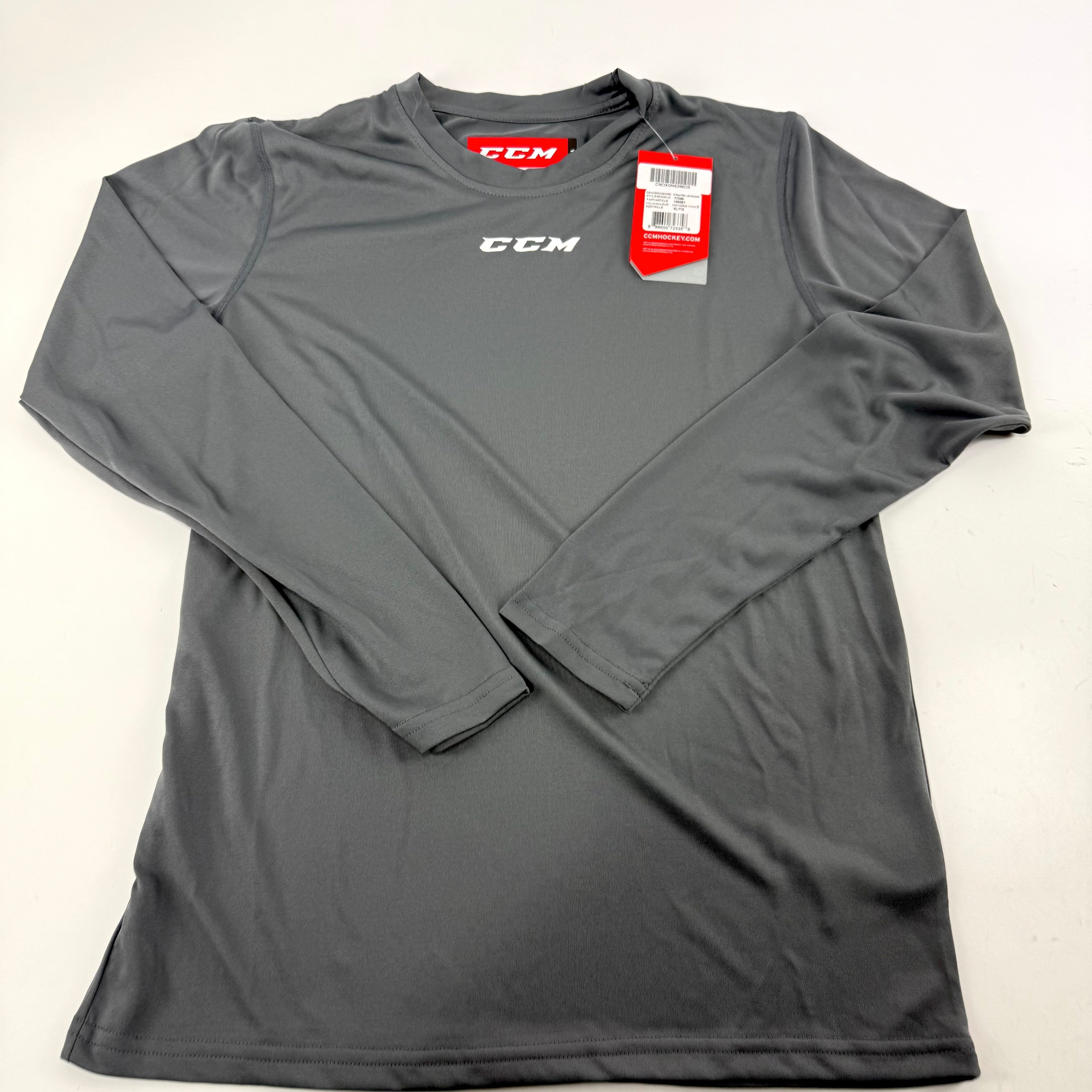 New Dark Grey CCM Youth Dri Fit Long Sleeve Training Shirt | Youth XL | #888600723358